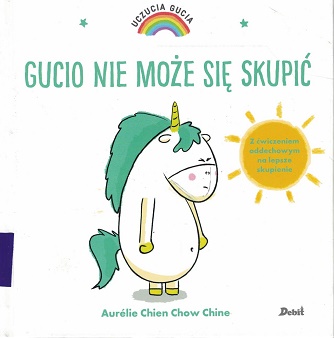 Gucio to mały jednorożec taki jak wszystkie. Albo prawie… Jego tęczowa grzywa zmienia kolor zależnie od tego, co Gucio odczuwa. Dzisiaj Gucio nie może się skupić. Myśli mu uciekają i trochę mu to przeszkadza. Zobacz, jak odzyska dobry humor. Seria historyjek, które pomagają dzieciom nazwać emocje i poradzić sobie z nimi. Aurélie Chien Chow Chine jest specjalistką od technik relaksacyjnych. Pracuje z dziećmi. [lubimy czytać]